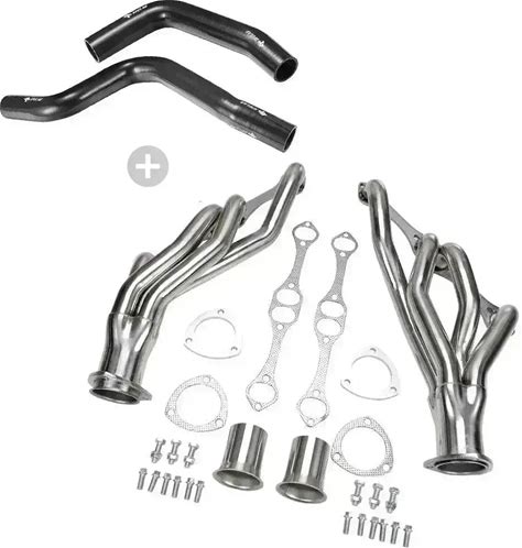 1970-1988 Chevy Monte Carlo SBC 283 327 350 400 Header With Bracket / Silicone Hose, Header+Silicone Hose Kit