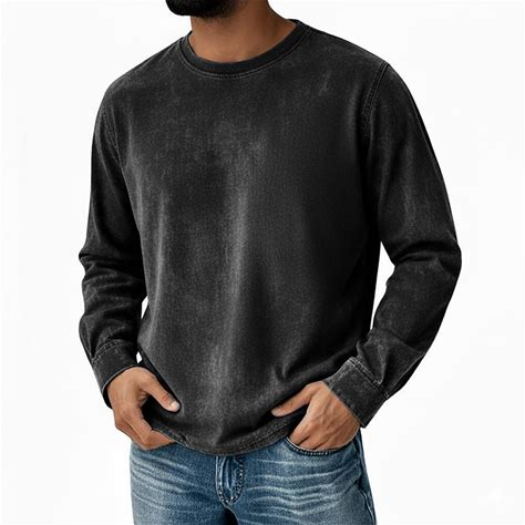 Men's T Shirt 100% Cotton Acid Wash Shirt Long Sleeve Crew Neck Fall Spring & Fall Autumn / Fall Flag American US Flag Flag / National Flag Knitwear