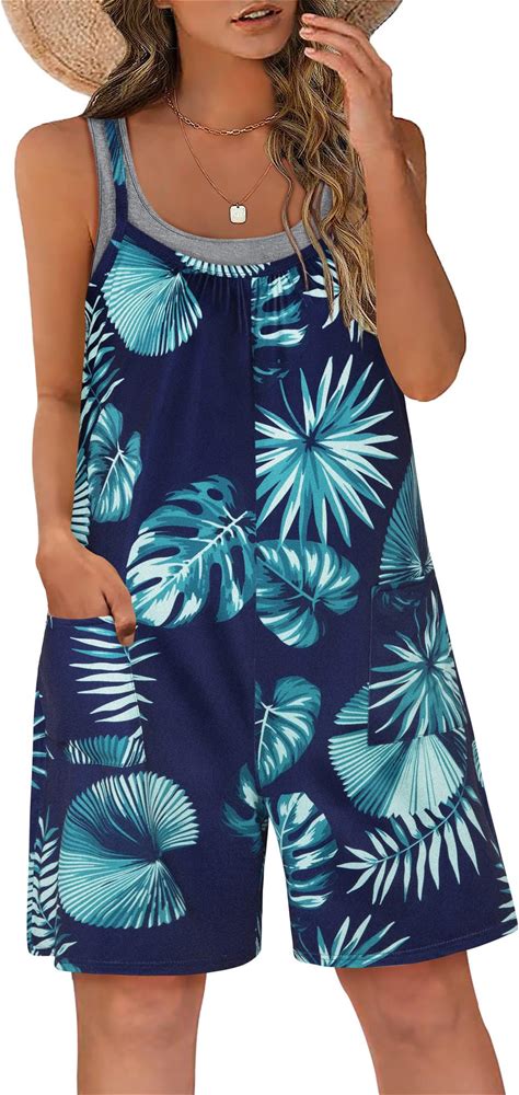 Vigorics Casual Rompers For Women Summer 2025 Sleeveless Adjustable Strap Shorts Jumpsuits Stretchy Romper With Pockets