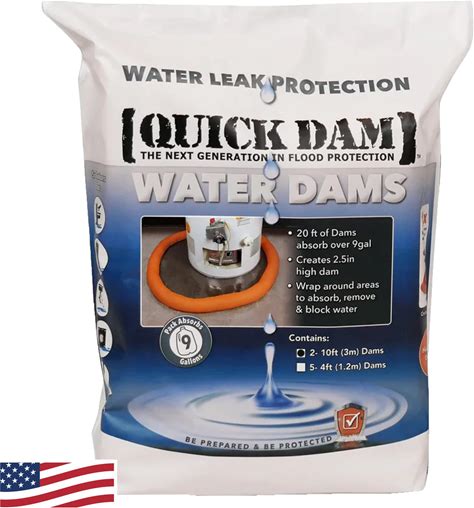 Quick Dam Water Activated 17ft Flood Barriers, Reusable Water Absorbers For Diverting Water, Protects From Rain, Spills, Leaks, Floods & More, 5 Pack