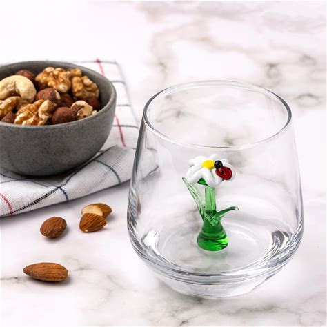 Glass Cup Inside Daisy, Ladybug On Flower Mug, Tumbler, Floral Glass, Handmade Glassware, Water Glass, Wedding, Table Decor, New House Gift