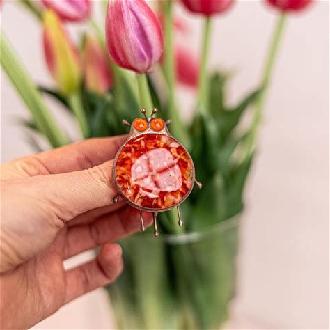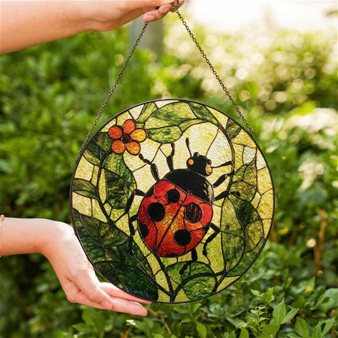 Ladybug Stained Glass Suncatcher Grandparent Gifts Garden Decoration Stained Glass Window Hangings Housewarming Gift First Home