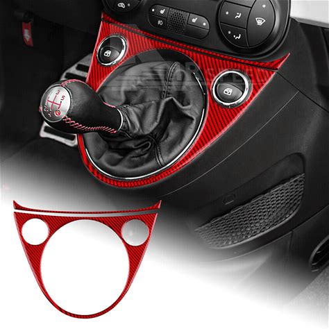Carbon Fiber For Fiat 500 11-23 Red Gear Shift Console Munual Gear