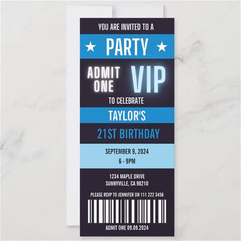 VIP Ticket 21st Any Age Birthday Party Invitation