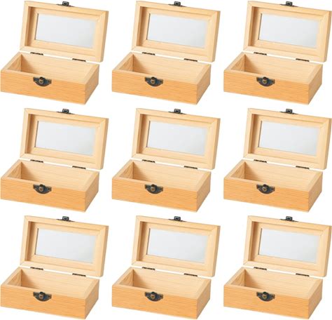 Aodaer 8 Pieces Unfinished Wood Treasure Chest Decorative Pine Wood Box With Hinged Lid And Locking Clasp Plain Decorate Wooden Boxes For Art Hobbies
