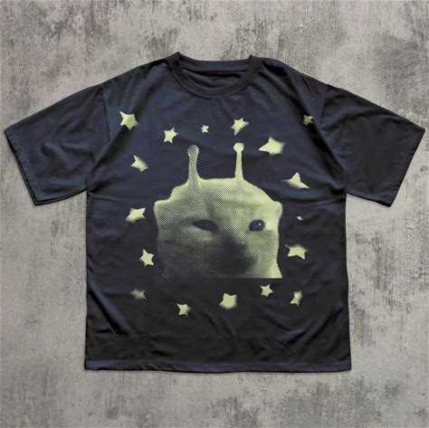 1Pc Y2K-Inspired Women's T-Shirt With Alien Cat Design - "GLERP! GLORP! ZEP ZEP ZEP" Text, Green Cat Character With Planets, Casual & Comfortable Round Neck Tee For All Seasons, Perfect Gift For Women And, Funny T Shirts,L