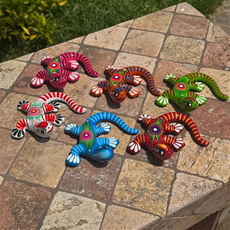 Beautiful Clay Lizard Gecko Decorative Wall / Table ,Hand-Painted Lizard Decor Wall Or Flat Surface,Lagarto Pintura Mexicana Lagartija Gecko