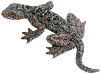 Medium Hand Paint Clay Lizard - Mexican Lizard Decor