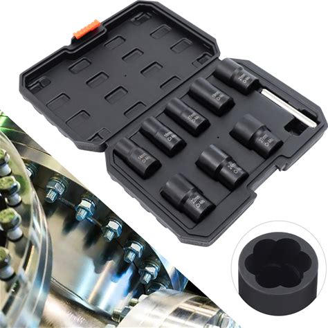 10 Pieces Damaged Rusty Nut Tyre Screw Remover Removal Tool Long Socket Set. Black. Drill Bits.