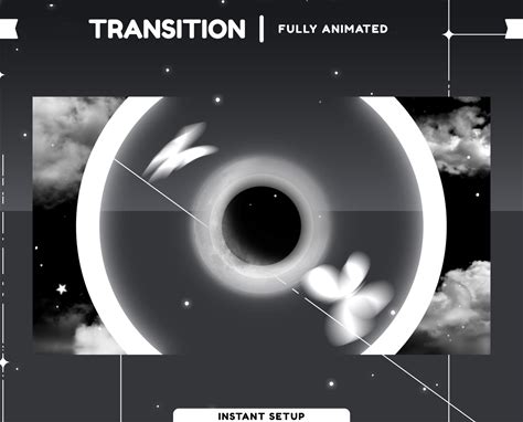 Starglint Animated Stinger Transition For Twitch Overlay, Black And White Transition Overlay, Dark Butterfly Overlay, Moon Cloud Theme, Sky