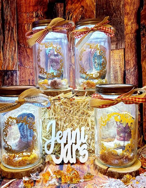 Western Farmhouse Light Up Mason Jar, Cowboy Kitchen Centerpiece, Western Mason Jar Decor, Birthday Gift For Her, Cowboy Party, Night Light