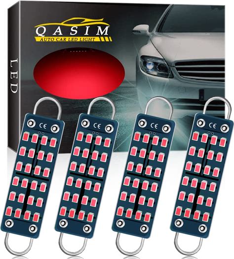 Qasim 44Mm(1.73") LED Loop Bulb Bright Red,No-Polarity 12V 211-2 212-2 561 562 567 564 RL4410 Interior Vanity Visor Light For Map Dome Trunk Courtesy