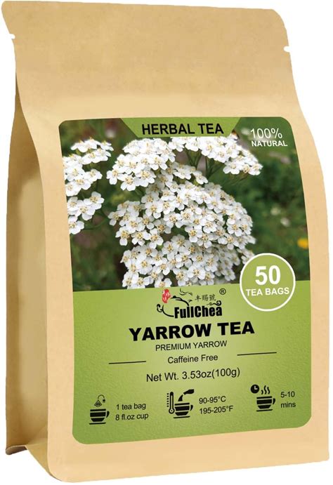 Fullchea - Yarrow Tea Bags, 50 Count, 2G/Bag - Premium Yarrow Herb - Non-GMO - Caffeine-Free - Aid Digestion & Boost Immunity