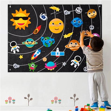 Belanttega Space Astronauts Solar System Felt Story Board Set 3.5 ft Storytelling Flannel Interactive Play Kit With Hooks Earth Planets Uranus Galaxy