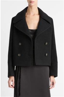 Double Breasted Crop Boiled Wool Peacoat In Black At Nordstrom Rack, Size X-Large