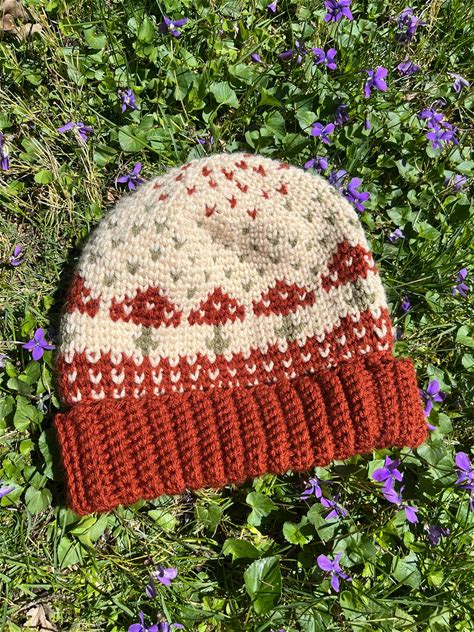 Handmade Crochet Colorwork Mushroom Beanie