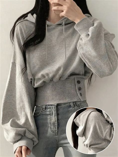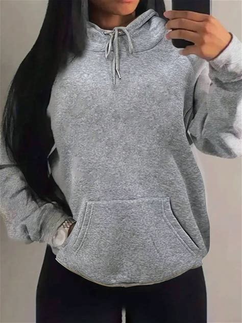 Drawstring Hoodie Sweatshirt,Ladies Casual Drawstring,Pocket Long Sleeve Hooded Regular Fit Regular Grey Drop Shoulder Pullovers Women Hoodies,Fall/Winter,Long Sleeve Tops Graduation,Back To School Outfits,Graduation,Teacher