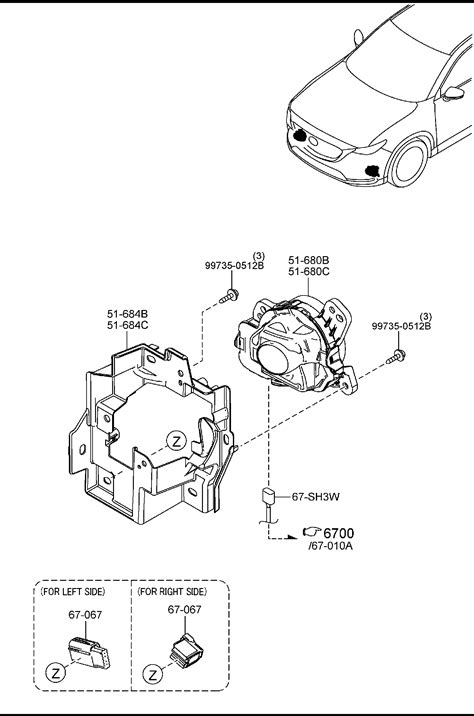Mazda3 (2007 2008 2009) LAMP(R), F.FOG - BAP151680C. FRONT COMBINATION LAMPS (4-DOOR)LAMP(R), F.FOG.
