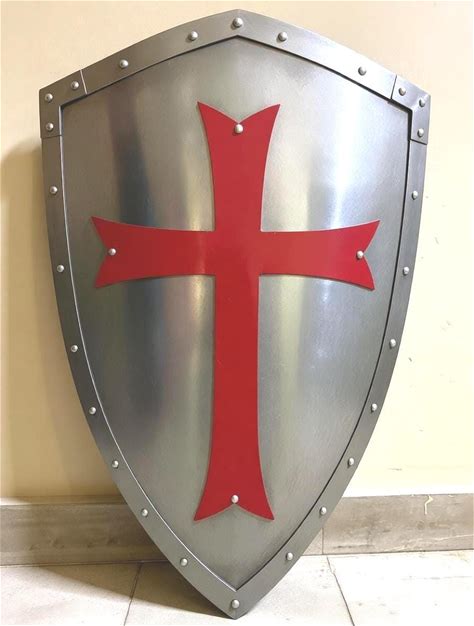Templar Armor Shield , Knight Shield , Red Cross Shield ,Medieval Crusader Metal Shield , Cosplay & Display Shield , Medieval Warrior Shield