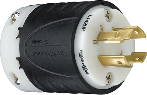 Legrand Pass & Seymour L1420PCCV3 Turnlok Industrial Spec Grade Locking Plug, 20 Amp 125/250V, NEMA L14-20P, Black/White (1 Count)
