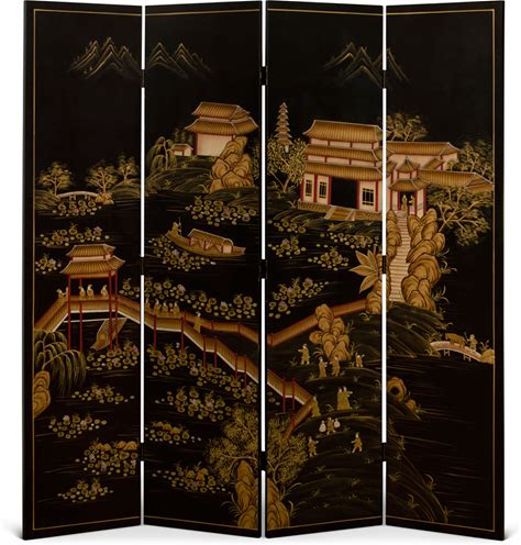 Hand-Painted Grand Chinoiserie Chinese Imperial Garden Four-Panel Floor Screen By China Furniture And Arts