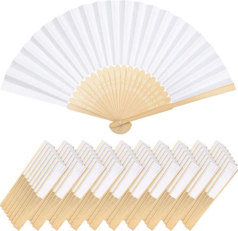 SL Crafts Paper Hand Fan Vintage Bamboo Handle Paper Folding Fans Outdoor Wedding Party Favors (White, 50)