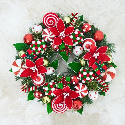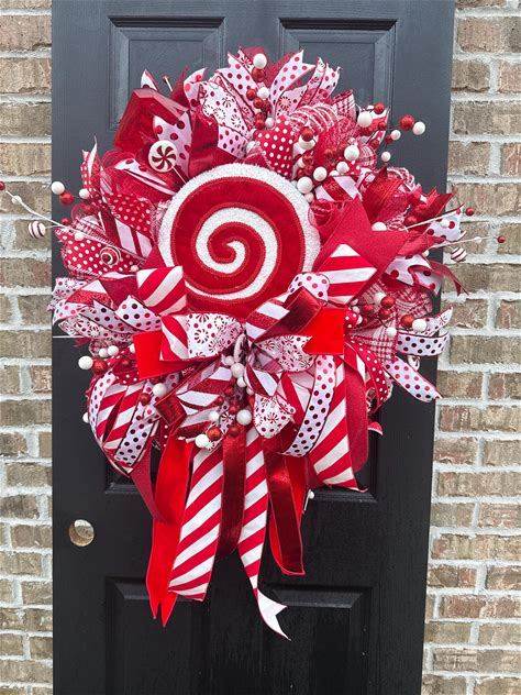 Christmas Wreath Mrs Claus Peppermint Parlor Handmade Deco Mesh Available In 24 Or 28 Inch Diameters