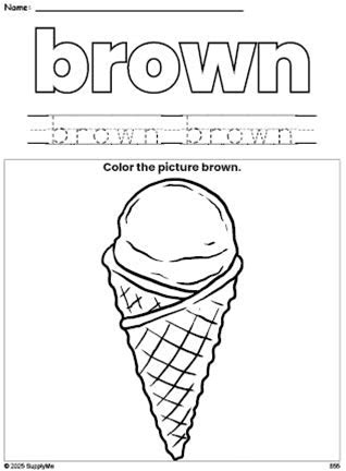 Ice Cream Color Brown Coloring Page And Color Worksheet, Brown Worksheet For Preschoolers To Learn Colors, Printable PDF