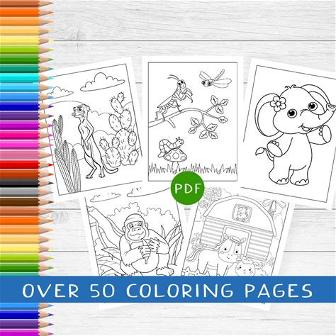 Animal Coloring Pages, Over 50 Printable Coloring Sheets, Kids Birthday Party Activity, Preschool Printables