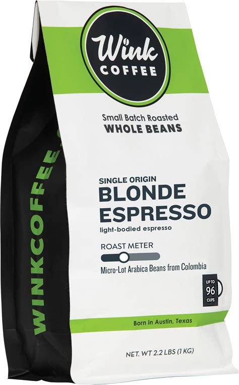 Wink Coffee Blonde Espresso, Light Roast Whole Bean Coffee, Single Origin Colombian Arabica Beans, 2.2 Lb, Small-Batch, Smooth, Sustainably Sourced